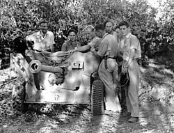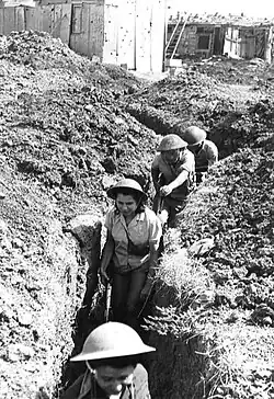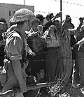 There were also several thousand men and women who had served in the British Army in World War II who did not serve in any of the underground militias but would provide valuable military experience during the war.[54] Walid Khalidi says the Yishuv had the additional forces of the Jewish Settlement Police, numbering some 12,000, the Gadna Youth Battalions, and the armed settlers.[55] Few of the units had been trained by December 1947.[46] On 5 December 1947, conscription was instituted for all men and women aged between 17 and 25 and by the end of March, 21,000 had been conscripted.[56] On 30 March, the call-up was extended to men and single women aged between 26 and 35. Five days later, a General Mobilization order was issued for all men under 40.[57]