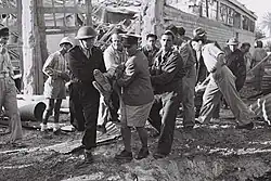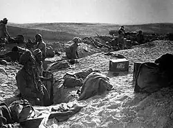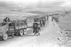 To counter this, the Yishuv authorities tried to supply the city with convoys of up to 100 armoured vehicles, but the operation became more and more impractical as the number of casualties in the relief convoys surged. By March, Al-Hussayni's tactic had paid off. Almost all of Haganah's armoured vehicles had been destroyed, the blockade was in full operation, and hundreds of Haganah members who had tried to bring supplies into the city were killed.[31] The situation for those who dwelt in the Jewish settlements in the highly isolated Negev and north of Galilee was even more critical.