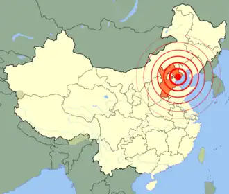 - ^ Also known as "Great Tangshan earthquake" in English sources, e.g. the voluminous work edited by Housner & He (2002).
