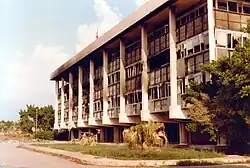 A few moments passed before the truck exploded, bringing down the nine-story building and killing 58 French paratroopers.[46] It is believed that this bomb was detonated by remote control and that, though similarly constructed, it was smaller than and slightly less than half as powerful as the one used against the Marines.[46] Many of the paratroopers had gathered on their balconies moments earlier to see what was happening at the airport.[47] It was France's worst military loss since the end of the Algerian War in 1962.[48]