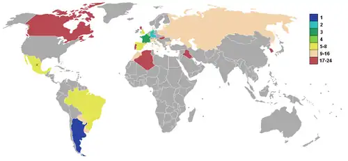- ^ "FIFA World Cup: Milestones, facts & figures. Statistical Kit 7" (PDF). FIFA. 26 March 2013. Archived from the original (PDF) on 21 May 2013.
