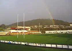 Venues in England included Twickenham Stadium and Welford Road Stadium, rugby union venues, as well as Ashton Gate Stadium in Bristol, which normally hosts football, and the McAlpine Stadium in Huddersfield, which normally hosts football and rugby league. Scottish venues included Murrayfield Stadium, the home of the Scottish Rugby Union; Hampden Park, the home of the Scottish Football Association; and the smallest venue in the 1999 tournament, Netherdale, in Galashiels, in the Scottish Borders. Venues in Ireland included Lansdowne Road, the traditional home of the Irish Rugby Football Union; Ravenhill Stadium; and Thomond Park. France used five venues, the most of any nation, including the French national stadium, Stade de France, which hosted the final of the 1998 FIFA World Cup, and would later go on to host the finals of both the 2007 and 2023 editions of the tournament.