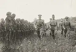 Soissons was taken by the 1st Division in July 1918. The Soisson's victory was costly – 700 men were killed or wounded. (One of them, Private Francis Lupo of Cincinnati, was missing in action for 85 years, until his remains were discovered on the former battlefield in 2003. The Remains of Pfc Charles McAllister, recovered with Francis Lupo were not identified and reburied until August 21, 2024).[10][11][12] The 1st Division took part in the first offensive by an American army in the war, and helped to clear the Saint-Mihiel salient by fighting continuously from 11 to 13 September 1918. The last major World War I battle was fought in the Meuse-Argonne Forest. The division advanced a total of seven kilometers and defeated, in whole or part, eight German divisions. This victory was mainly due to the efforts of Colonel George C. Marshall, who began the war as the division's deputy chief of staff before being elevated to G-3 for the entire AEF in July 1918. Combat operations ended with the implementation of the terms of the Armistice on 11 November 1918. At the time the division was at Sedan, the farthest American penetration of the war, and was the first to cross the Rhine into occupied Germany.