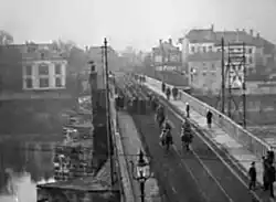 The first units sailed from New York City and Hoboken, New Jersey, on 14 June 1917.[7] Throughout the remainder of the year, the rest of the division had followed, landing at St. Nazaire, France, and Liverpool, England. After a brief stay in rest camps, the troops in England proceeded to France, landing at Le Havre. The last unit arrived in St. Nazaire 22 December. Upon arrival in France, the division, less its artillery, was assembled in the First (Gondrecourt) training area, and the artillery was at Le Valdahon.