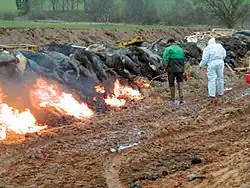 Cattle being burned to prevent spread of foot-and-mouth disease: millions of cattle died during the 2001 outbreak.