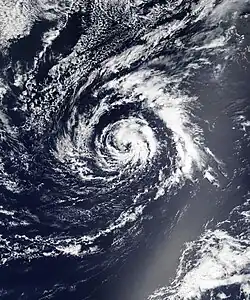 Several cyclones impacted Bermuda during the season, most significantly Hurricane Fabian. On the island, its passage proved to be the costliest and resulted in the first death since a hurricane in 1926.[21] The hurricane killed four on the island when its strong waves and storm surge washed two cars off the causeway between St. George's Parish and St. David's Island.[22] Damage from the hurricane totaled $300 million (2003 USD).[23] Elsewhere, Hurricane Juan was considered among the most damaging in the history of Halifax, Nova Scotia, where strong winds downed thousands of trees and left low-lying areas flooded from a record storm surge to the city. The hurricane caused a total of eight deaths and damage estimated at $200 million (2003 CAD, $150 million 2003 USD).[24]