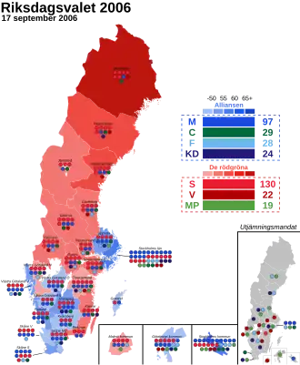 - ^ a b c d e f g "Allmänna val 17 september 2006" (in Swedish). Valmyndigheten. Archived from the original on 2021-09-28. Retrieved 2017-06-25.