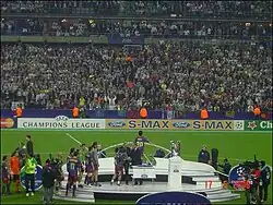 Barcelona captain Carles Puyol collected the trophy from UEFA president Lennart Johansson as Barcelona celebrated their second European Cup triumph.[18]