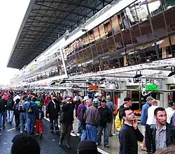 Nine new garages were built at the end of the pit lane, replacing the four temporary garages that had been built a few years earlier. The additional garages allowed the ACO to increase the number of entries it could grant from 50 to 55. The paddock behind the garages was also re-organized with more facilities added for spectators, including more shops, new landscaping, and the Audi Tower monument.[5]