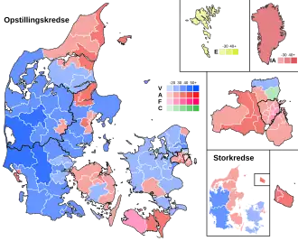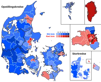 General elections were held in Denmark on 13 November 2007.[1][2] The elections allowed prime minister Anders Fogh Rasmussen to continue for a third term in a coalition government consisting of Venstre and the Conservative People's Party with parliamentary support from the Danish People's Party.[3] They were the first elections held using the current constituencies.