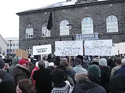 225. ^ Einarsdottir, Helga Kristin; Brogger, Tasneem (15 November 2008). "Icelanders Take to Streets to Protest Policy Makers' Failures. On January the third, the thirteenth consecutive protest was held. The protest bringing from 4000–7000 demonstrators(facts vary)". Bloomberg. Retrieved 15 November 2008.