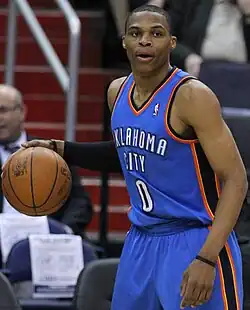 For the first time in draft history the first three draft picks were all freshmen.[5] The Chicago Bulls used the first overall pick to draft Chicago native Derrick Rose from the University of Memphis, who later went on to win the NBA Rookie of the Year Award, making him the first player to be drafted first overall and to win Rookie of the Year since LeBron James in 2003, and also became the youngest player to win the NBA Most Valuable Player Award in 2011 at age 22.[6] The Miami Heat used the second pick to draft Michael Beasley from Kansas State University, and the Minnesota Timberwolves used the third pick to draft O. J. Mayo from The University of Southern California.[7] The Seattle SuperSonics used their 4th overall pick to draft Russell Westbrook from The University of California, Los Angeles, who would go on to win the 2017 NBA MVP award and is widely considered the best player in this draft. With five players taken in the draft, the University of Kansas tied University of Connecticut (2006) and University of Florida (2007) for the record with the most players selected in the first two rounds of an NBA draft until the University of Kentucky (2012) broke the record with six players drafted.[5] Another record was set when twelve freshmen were drafted, ten of whom were drafted in the first round.[8] Of the players drafted, 29 are forwards, 19 are guards, and 12 are centers.