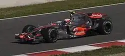 Three practice sessions were held before the Sunday race—two on Friday, and a third on Saturday. The Friday morning and afternoon sessions each lasted 90 minutes. The third session was held on Saturday morning and lasted an hour.[18] The Ferraris were fastest in the first session; Räikkönen was quickest with a time of 1:20.649, ahead of Massa, who recovered from a spin and an off-track excursion on his first two laps to take second.[19] Hamilton, Kubica and Kovalainen took the next three positions, ahead of home driver Alonso in sixth.[19] Räikkönen repeated his morning effort in the second session, with a time of 1:21.935, as the frontrunners experimented with higher fuel loads.[20] Renault driver Nelson Piquet was next quickest, ahead of Alonso, Williams driver Kazuki Nakajima, Massa and Red Bull driver Mark Webber.[20] The McLarens had a less successful session; Kovalainen struggled with gearbox problems, and difficulty with Hamilton's set-up meant he managed 11th after suffering from excessive oversteer.[21] Heidfeld was quickest in the final session, his 1:21.269 benefiting from use of the quicker soft compound tyre.[22] Webber's teammate David Coulthard was next quickest, ahead of Alonso, Kubica, Toyota driver Jarno Trulli and Sébastien Bourdais of Toro Rosso. Ferrari and McLaren again ran heavier cars, and neither team managed better than ninth quickest.[22] Mechanical problems meant Webber failed to set a time, his car coming to a halt in the pit-lane exit after two installation laps.[22]