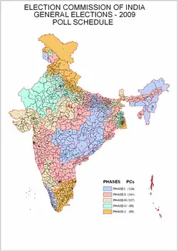 The polling schedule for the 2009 General Elections was announced by the Chief Election Commissioner on 2 March 2009.[11]