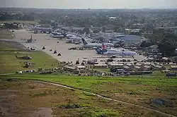 President Préval and government ministers used police headquarters near the Toussaint L'Ouverture International Airport as their new base of operations, although their effectiveness was extremely limited; several parliamentarians were still trapped in the Presidential Palace, and offices and records had been destroyed.[86] Some high-ranking government workers lost family members, or had to tend to wounded relatives. Although the president and his remaining cabinet met with UN planners each day, there remained confusion as to who was in charge and no single group had organized relief efforts as of 16 January.[87] The government handed over control of the airport to the United States to hasten and ease flight operations, which had been hampered by the damage to the air traffic control tower.[88]
