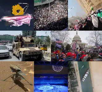 Crowd outside the US Capitol on January 6 - January 6 – Supporters of US President Donald Trump attack the US Capitol, disrupting certification of the 2020 presidential election, and forcing both houses of Congress to evacuate. Five people die during the ensuing riot.[4] The event is classified as a domestic terrorist attack, and draws international condemnation.[5]