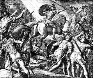 - 14:1–15:36: Demetrius I becomes King. Alcimus, who had replaced Menelaus as High Priest, is affirmed by Demetrius I. Nicanor is appointed governor of Judea. Nicanor and Judas enter negotiations for peace, but are subverted by Alcimus, who complains to the king; Judas's arrest is ordered. Nicanor threatens to destroy the Temple. In a dream vision, Onias III and the prophet Jeremiah give Judas a divine golden sword. At the Battle of Adasa, Judas defeats and kills Nicanor, preserving the sanctity of the Temple. The Day of Nicanor festival is established. (~161 BC)