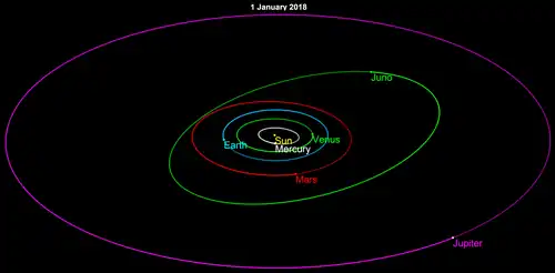 - ^ "AstDyS-2 Juno Synthetic Proper Orbital Elements". Department of Mathematics, University of Pisa, Italy. Archived from the original on 9 July 2021. Retrieved 1 October 2011.
