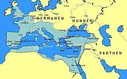 - Winter – Gainas leads the remaining Goths back to their homeland across the Danube. They meet the Huns and are defeated; the Hunnic chieftain Uldin sends the head of Gainas to Constantinople, where Arcadius receives it as a diplomatic gift.