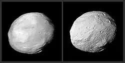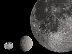 - ^ Other objects in the Solar system with well-defined masses within a factor of 2 of Vesta's mass are Varda, Gǃkúnǁʼhòmdímà, and Salacia (245, 136, and 492×1018 kg, respectively). No moons are in this range: the closest, Tethys (Saturn III) and Enceladus (Saturn II), are over twice and less than half of Vesta's mass.