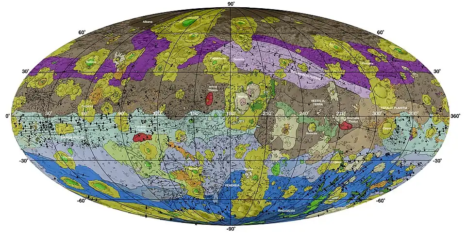 - ^ a b c d Williams, D. A.; Yingst, R. A.; Garry, W. B. (December 2014). "Introduction: The geologic mapping of Vesta". Icarus. 244: 1–12. Bibcode:2014Icar..244....1W. doi:10.1016/j.icarus.2014.03.001. hdl:2286/R.I.28071.