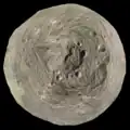 ![]() True color image of Vesta taken by Dawn. The massive Rheasilvia Crater dominates Vesta's south pole. | |
