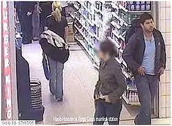 Hasib Hussain, the bus bomber in Tavistock Square, captured on CCTV leaving a Boots store on the King's Cross station concourse at 9:00 a.m. on 7 July 2005