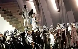 On September 25 and 26, 2015, West performed a re-arranged version of the album in its entirety at the Hollywood Bowl in Los Angeles.[172] The performance involved numerous collaborators, including vocal ensemble Roomful of Teeth, orchestral performers, more than sixty dancers, rappers Kid Cudi and Young Jeezy, as well as actress Zoë Kravitz.[173][174] On October 20, 2015, West released a studio version of "Say You Will" featuring vocals by American composer and violinist Caroline Shaw, from Roomful of Teeth, onto his SoundCloud account, similar to the version performed at the Hollywood Bowl.[175]