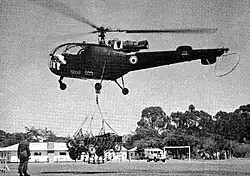A Rhodesian SE 3160 Alouette III hovering with an underslung cargo, August 1962