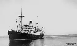 Centaur was allocated the United Kingdom Official Number 147275 and the Code Letters KHHC. Her port of registry was Liverpool.[18] When Centaur entered service at the end of 1924, the Fremantle–Java– Singapore trade route was being serviced by two other Blue Funnel Line vessels; Gorgon (which remained in service until 1928) and Charon (which Centaur was replacing).[19] Centaur's route ran from Fremantle up the Western Australian coast calling at Geraldton, Carnarvon, Onslow, Point Samson, Port Hedland, Broome, and Derby[20] then to the Bali Strait, Surabaya, Semarang, Batavia, and Singapore.[6] Centaur operated as a cross between a tramp steamer and a freight liner; she travelled a set route, but stops at ports along the route varied between journeys.[19] From 1928 until sometime in the 1930s, Centaur remained alone on her route, but the increase in trade along this route prompted Blue Funnel Line to reassign Gorgon and assign the new Charon to work alongside Centaur.[21]