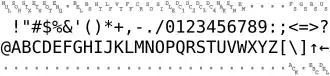 | 5x | P | Q | R | S | T | U | V | W | X | Y | Z | [ | \ | ] | ^ | _ |