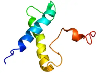 10. ^ PDB: 1VZS​; Carbajo RJ, Silvester JA, Runswick MJ, Walker JE, Neuhaus D (September 2004). "Solution structure of subunit F(6) from the peripheral stalk region of ATP synthase from bovine heart mitochondria". Journal of Molecular Biology. 342 (2): 593–603. doi:10.1016/j.jmb.2004.07.013. PMID 15327958.