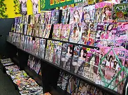 The AV, or "Adult Video" market is a major industry in Japan, reportedly worth about ¥400 billion ($4 billion) per year. In 1992, it was reported that over 11 AVs were being made every day by over 70 production companies in Tokyo alone. The AV market was estimated to make up about 30 percent of Japan's video rentals.[1] It was estimated in 1994 that, between legal and illegal videos, around 14,000 AVs a year were being made in the country, in contrast to about 2,500 in the United States.[4] In an English language interview in 2011, AV idol Azusa Maki estimated that as many as 10,000 girls attempt to get into the Japanese AV industry each year.[5]