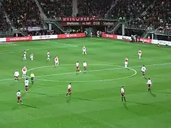 AZ was founded on 10 May 1967 as AZ '67, the result of a merger of Alkmaar '54 and FC Zaanstreek.[1] Alkmaar '54 was founded as a professional team in April 1954 to play in the 10-team NBVB league, created because the Royal Dutch Football Association (KNVB) refused to organize a professional league (the KNVB took over in 1955). Alkmaar '54, and by extension AZ, played the first professional match in the Netherlands: on 14 August 1954, they won 3–0 at home against Venlo '54, with Klaas Smit scoring the first and third goal.[2] After winning the Eerste Divisie in 1960–61, it played one year in the Eredivisie.