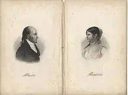 Burr and Theodosia were married in 1782, and they moved to a house on Wall Street in Lower Manhattan.[34] After several years of severe illness, Theodosia died in 1794 from stomach or uterine cancer.[35] Their only child to survive to adulthood was Theodosia Burr Alston, born in 1783.[36]