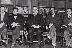 Eban left the United States in 1959 and returned to Israel, where he was elected to the Knesset (the Israeli parliament) as a member of Mapai.[16] He served under David Ben-Gurion as Minister of Education and Culture from 1960 to 1963, then as deputy to Prime Minister Levi Eshkol until 1966.[16][21] Through this period (1959–66), he also served as president of the Weizmann Institute of Science in Rehovot.[16]