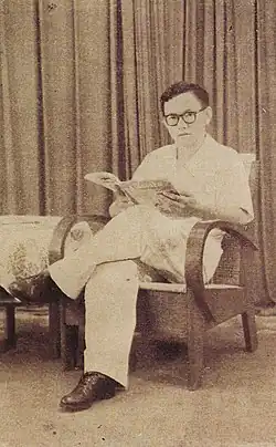 After the Indonesian Declaration of Independence on 17 August 1945, Abdurrahman Wahid moved back to Jombang and remained there during the fight for independence from the Netherlands during the Indonesian National Revolution. At the end of the war in 1949, Abdurrahman Wahid moved to Jakarta as his father had been appointed Minister of Religious Affairs. He was educated in Jakarta, going to KRIS Primary School before moving to Matraman Perwari Primary School. Abdurrahman Wahid was encouraged to read non-Muslim books, magazines, and newspapers by his father to further broaden his horizons.[10] He stayed in Jakarta with his family even after his father's removal as Minister of Religious Affairs in 1952. On 19 April 1953, Wahid Hasyim died in a car crash in Cimahi.[11]