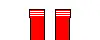 Photograph of one story facade with red doors