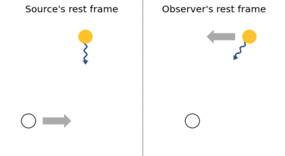 Aberration is related to two other phenomena, light-time correction, which is due to the motion of an observed object during the time taken by its light to reach an observer, and relativistic beaming, which is an angling of the light emitted by a moving light source. It can be considered equivalent to them but in a different inertial frame of reference. In aberration, the observer is considered to be moving relative to a (for the sake of simplicity[9]) stationary light source, while in light-time correction and relativistic beaming the light source is considered to be moving relative to a stationary observer.