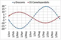 Hypothetical observation of γ Draconis if its movement was caused by parallax