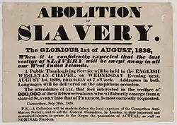 A poster advertising a special chapel service to celebrate the Abolition of Slavery in 1838