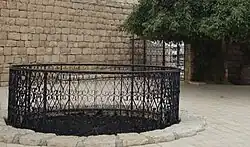 The story of the life of Abraham, as told in the narrative of the Book of Genesis in the Hebrew Bible, revolves around the themes of posterity and land.[12] He is said to have been called by God to leave the house of his father Terah and settle in the land of Canaan, which God now promises to Abraham and his progeny. This promise is subsequently inherited by Isaac, Abraham's son by his wife Sarah, while Isaac's half-brother Ishmael is also promised that he will be the founder of a great nation. Abraham purchases a tomb (the Cave of the Patriarchs) at Hebron[13] to be Sarah's grave, thus establishing his right to the land; and, in the second generation, his heir Isaac is married to a woman from his own kin to earn his parents' approval. Abraham later marries Keturah and has six more sons; but, on his death, when he is buried beside Sarah, it is Isaac who receives "all Abraham's goods" while the other sons receive only "gifts".[14]