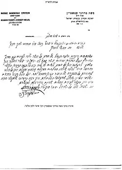 - ^ "(RaYa"Tz. Sixth Grand Rabbi of Lubavitch, 1880-1950). Typed Letter Signed in Hebrew, (with two words in his own hand) on personal letterhead, to R. Abraham Isaac HaKohen Kook, Chief Rabbi of Eretz Israel". www.kestenbaum.net. Retrieved 14 September 2025.