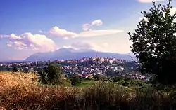 The name Abruzzo, according to the most accredited hypothesis first proposed by Renaissance historian Flavio Biondo in Italia Illustrata, derives from Aprutium as a popular evolution of (ad) Praetutium, meaning "land of the Praetutii", an ancient Italic people that lived in the area of present-day Teramo.[14] According to other hypotheses, the name could also derive from abruptus (Latin for "steep" or "precipitous").[15][16][17]
