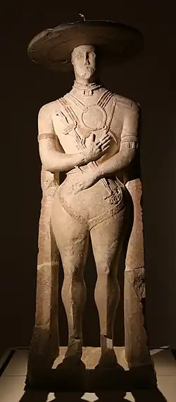 Warrior of Capestrano is the most famous example of Abruzzi Italic funerary sculpture (Museo Archeologico Nazionale d'Abruzzo, Chieti).
