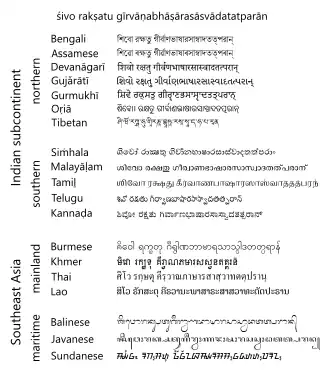 - Pallava script – Tamil, Sanskrit, various Prakrits