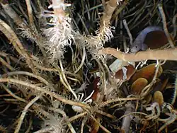 Though the plains were once assumed to be vast, desert-like habitats, research over the past decade or so shows that they teem with a wide variety of microbial life.[55][56] However, ecosystem structure and function at the deep seafloor have historically been poorly studied because of the size and remoteness of the abyss. Recent oceanographic expeditions conducted by an international group of scientists from the Census of Diversity of Abyssal Marine Life (CeDAMar) have found an extremely high level of biodiversity on abyssal plains, with up to 2000 species of bacteria, 250 species of protozoans, and 500 species of invertebrates (worms, crustaceans and molluscs), typically found at single abyssal sites.[57] New species make up more than 80% of the thousands of seafloor invertebrate species collected at any abyssal station, highlighting our heretofore poor understanding of abyssal diversity and evolution.[57][58][59][60] Richer biodiversity is associated with areas of known phytodetritus input and higher organic carbon flux.[61]