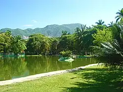 Acapulco de Juárez (Spanish: [akaˈpulko ðe ˈxwaɾes] ), commonly called Acapulco (/ˌækəˈpʊlk/ AK-ə-PUUL-koh,[2][3] US also /ˌɑːk-/ AHK-;[2] Nahuatl languages: Acapolco), is a city and major seaport in the state of Guerrero on the Pacific Coast of Mexico, 380 kilometres (240 mi) south of Mexico City. Located on a deep, semicircular bay, Acapulco has been a port since the early colonial period of Mexico's history.[4] It is a port of call for shipping and cruise lines running between Panama and San Francisco, California, United States.[5] The city of Acapulco is the largest in the state, far larger than the state capital Chilpancingo. Acapulco is also Mexico's largest beach and balneario resort city.[6] Acapulco de Juárez, Guerrero is the municipal seat of the municipality of Acapulco, Guerrero.
