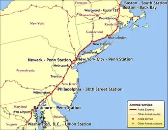 77. ^ Laurence Arnold (December 11, 2001). "Fast train begins service with Washington-Boston roundtrip". Boston Globe. Associated Press. Retrieved November 13, 2006.