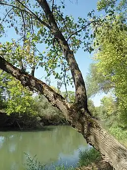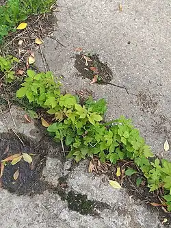 Because of its leaflets' superficial similarity to those of poison ivy, Acer negundo saplings are often mistaken for the allergenic plant. While both poison ivy and Acer negundo have compound leaves composed of three leaflets with ragged edges, Acer negundo exhibits an opposite branching pattern, as opposed to the alternating pattern of poison ivy.[17] Like poison ivy, Acer negundo is also a noted riparian species, and can often be found growing along riverbeds and in wet soils generally. For all these reasons, and despite their obvious differences, Acer negundo is sometimes referred to informally as the poison ivy tree.[18]